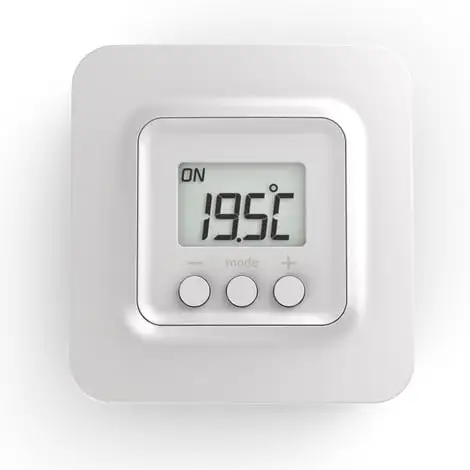 Thermostat de zone. Si seul, commande au choix la chaudière, la pompe à chaleur non réversible, la vanne de zone a tête électrothermique ou le circulateur. Si est associé (TYDOM 1.0, 2.0 , 3,0, TYDOM 4000, TYBOX 2000,TYBOX 2020 WT et CALYBOX 2020 WT) peut commander en mode chaud ou froid. Régulation chronoproportionnelle (P.I.). Indication de la température ambiante. Dérogation de la consigne par zone.